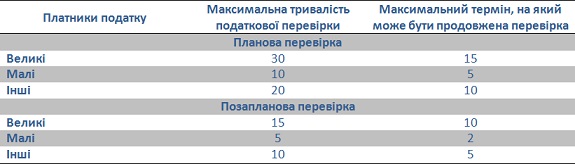 Інформація щодо тривалості податкових перевірок наведена в таблиці нижче (в робочих днях):